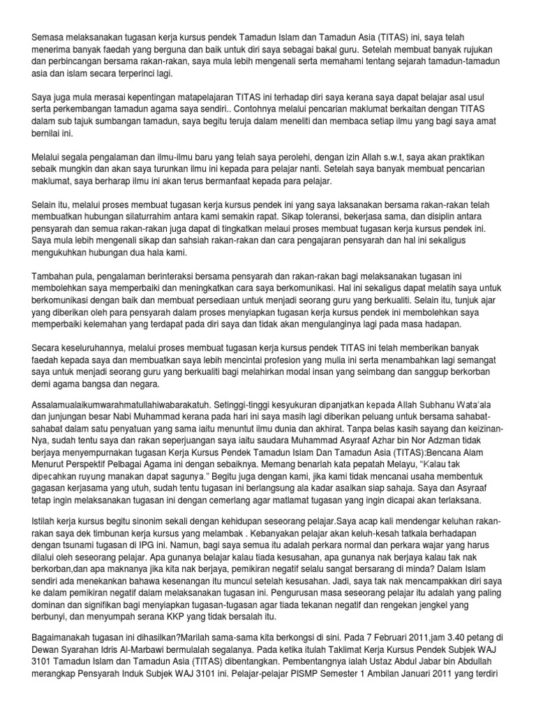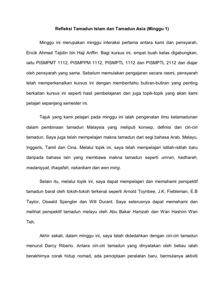 Contoh Refleksi Tamadun Islam Dan Asia Written By Aliza_Bean.4 Wednesday, May 25, 2022 Add Comment Edit Refleksi Islam Pdf Contoh Refleksi Tugasan Pdf Refleksi Titas Pdf Refleksi Tamadun Islam Dan Tamadun Asia Pdf Tamadun Islam Dan Tamadun Asia Sarjana Muda Pendidikan Awal Kanak Kanak Beche Semester 1 2021 Studocu Share this post